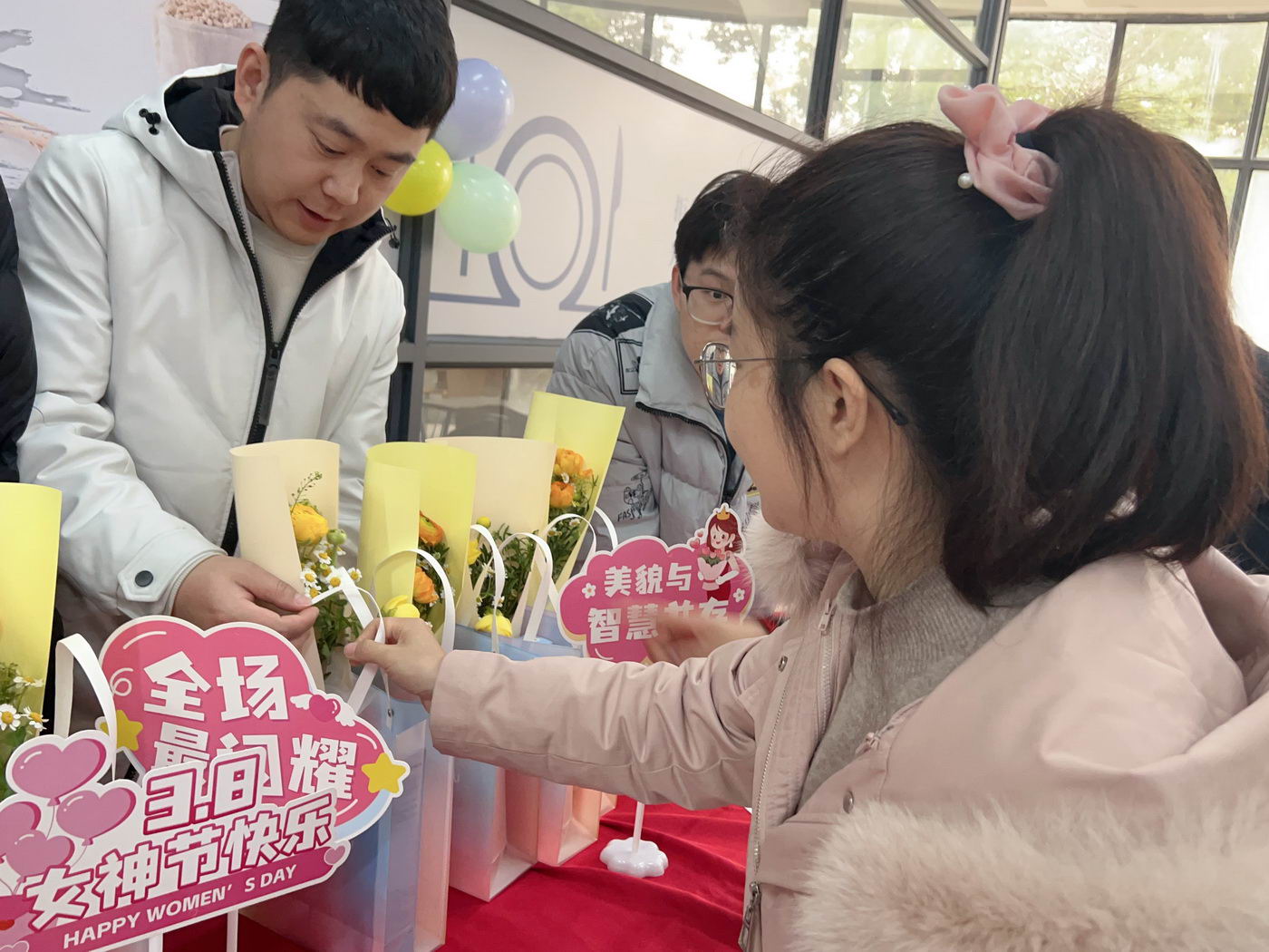 为庆祝第115个“三八”国际劳动妇女节,表达对全体女员工的关爱和祝福,3月7日中午,公司在两个园区食堂举办了节日福利派送活动,并由三德男神亲自赠送节日物资和鲜花,活动现场氛围感满满,女神们脸上了绽放着幸福的笑容。