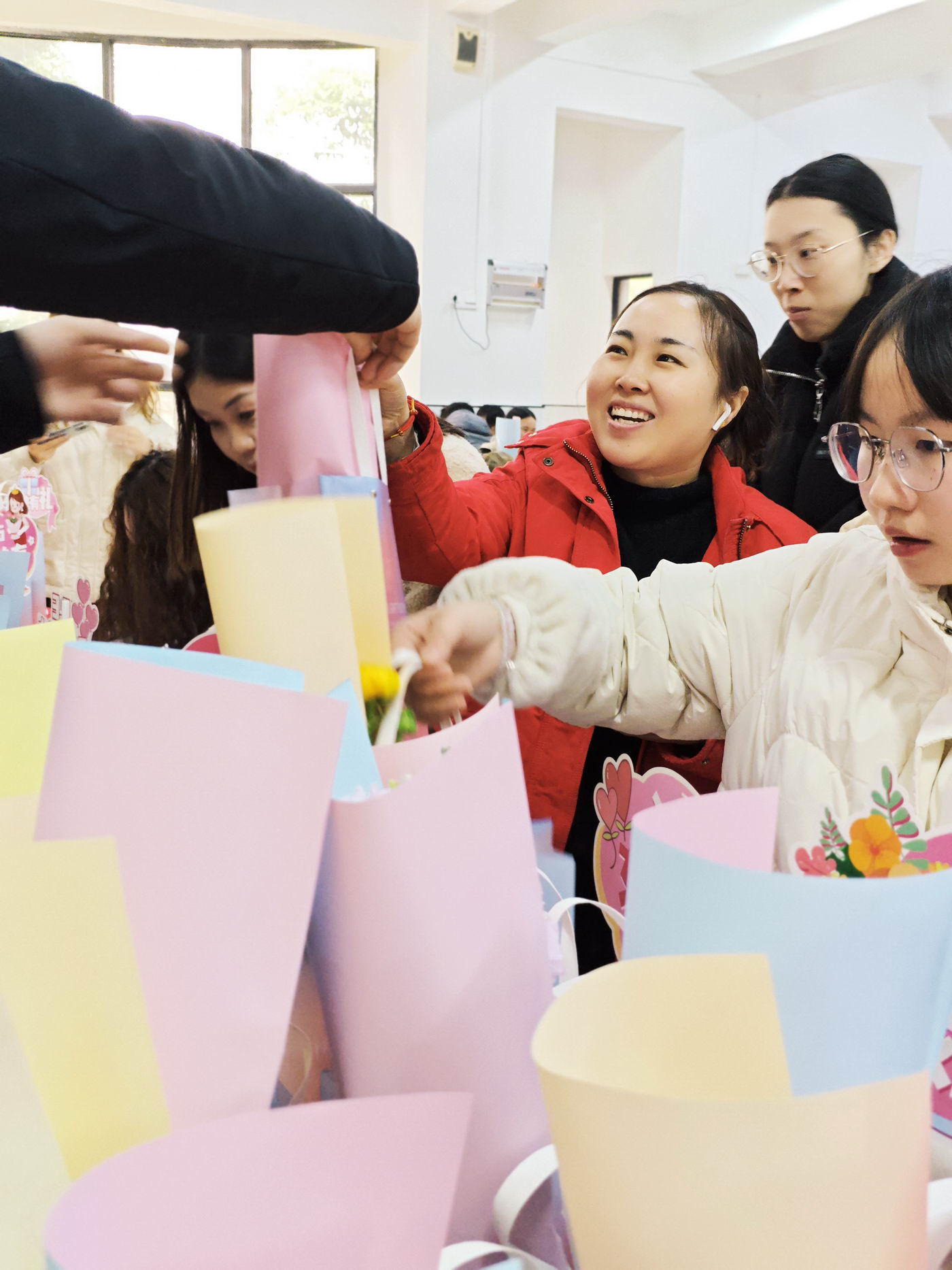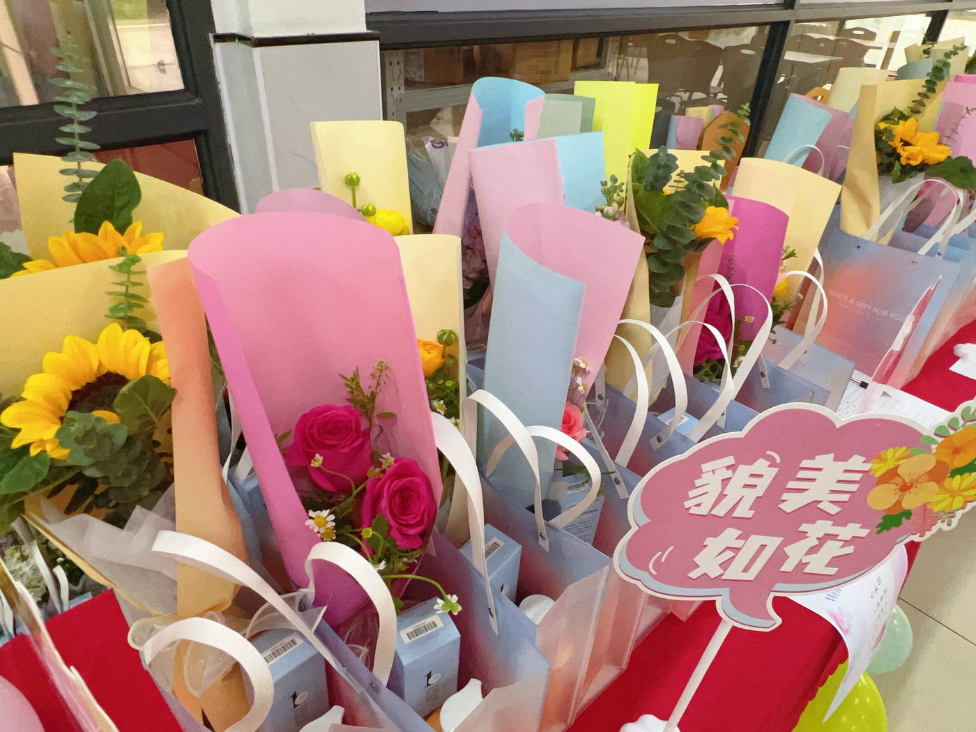 为庆祝第115个“三八”国际劳动妇女节,表达对全体女员工的关爱和祝福,3月7日中午,公司在两个园区食堂举办了节日福利派送活动,并由三德男神亲自赠送节日物资和鲜花,活动现场氛围感满满,女神们脸上了绽放着幸福的笑容。