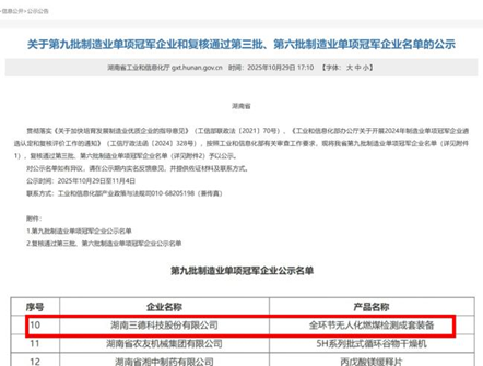 近日,国家“第九批制造业单项冠军企业”名单公示, 三德科技凭借核心产品“全环节无人化燃煤检测成套装备”成功入选。