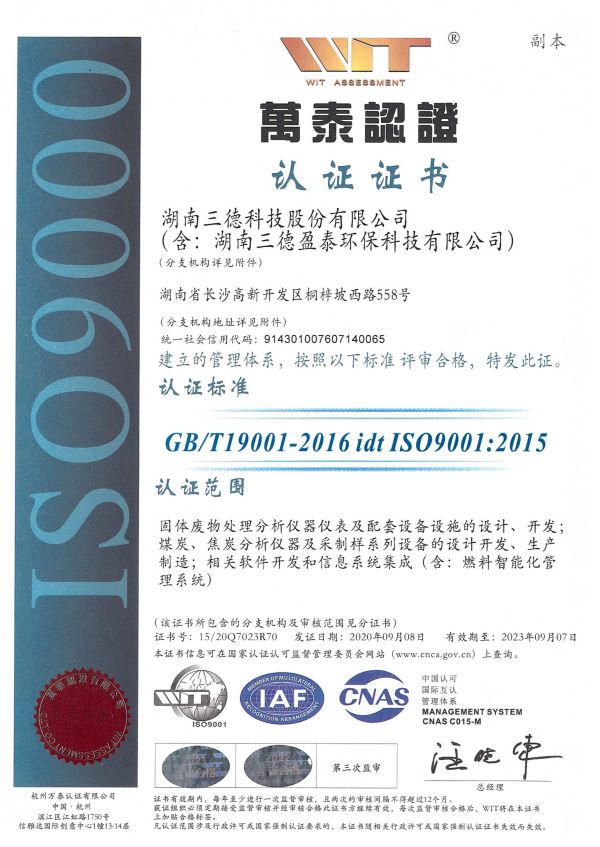 三德科技自成立以来,始终注重企业规范化建设。2011年首次通过ISO质量管理体系认证,2013年获ISO质量管理、环境管理、职业健康安全管理三体系认证,迄今已连续十余年每年定期进行专业认证并顺利通过。这既是对三德科技管理体系的认可,同时也是对公司管理水平的鞭策。