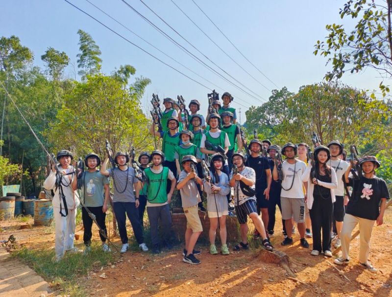 天气晴朗,山庄里充满了阳光的气息,趁这大好时光,大家开始集合练习射箭,舒展拳脚为接下来的CS对战做准备。在教练的指导下,大家分为防守和进攻两组进行真人CS对战,经过一番角逐后防守方胜出。热情高涨的大家在更换防守进攻方后,又大战了一场才算尽兴。酣畅淋漓之后,稍作歇息,就到了快乐的皮划艇时光了。此时阳光撒在湖面上波光粼粼,微风拂过脸颊温暖舒爽,放眼望去四周的景色犹如一副岁月静好的画卷;接下来的极限飞盘对抗赛也很受欢迎,教练讲完规则后,大家就开始分为四组,两两进行对抗比赛了。大家在草地上尽情奔跑,挥洒汗水,还是从前那个少年,初心从未有改变。